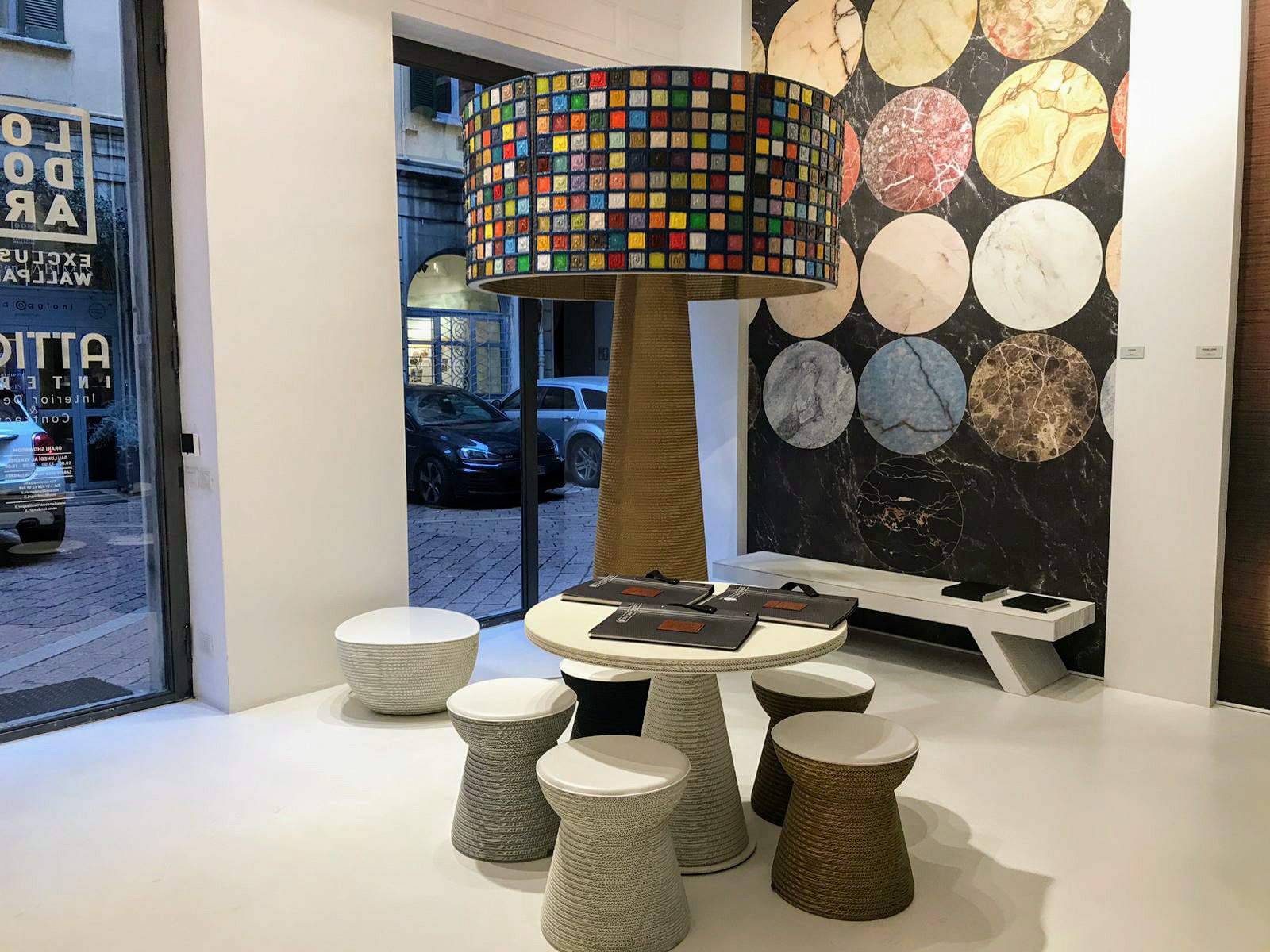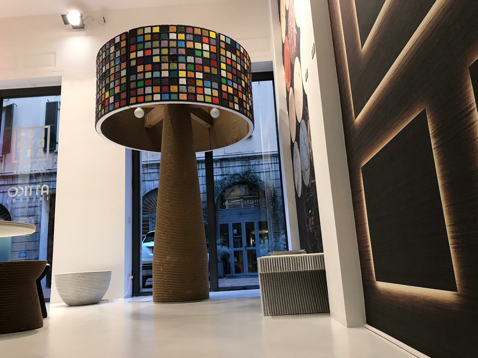 La superlampada Marilyn Murrina Pop, frutto della collaborazione tra Luca Moretto, Staygreen Venezia e Mungo Italia, da novembre 2018 in esposizione nello showroom di Staygreen Venezia, in via Pontaccio 19
