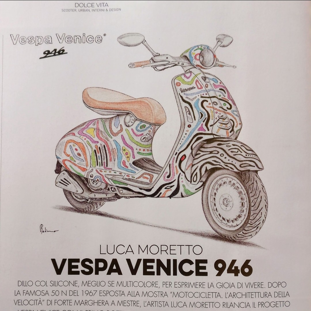 Non poteva mancare la Vespa Venice, l’opera più famosa dell’artista veneto Luca Moretto, per onorare la presenza della Vespa alla mostra “MOTOCICLETTA. L’ARCHITETTURA DELLA VELOCITÀ”, al Forte Marghera (spazio espositivo della Fondazione Musei Civici di Venezia) fino al 28 ottobre.
