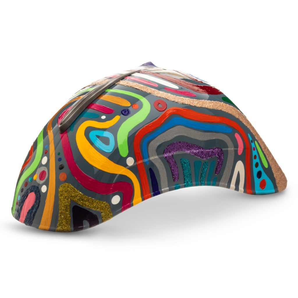 “Sono intervenuto dipingendone il Parafango anteriore ed il Fianchetto sinistro con la tecnica “Acrilico a Rilievo”, la stessa che ho usato nel 2010 sulla “Vespa Venice”. Nel commissionarmi il lavoro, Fabio mi chiese di fare qualcosa che facesse capire a chi lo avrebbe incrociato, che quella Vespa stava compiendo un’impresa memorabile. Ecco perché ho voluto usare la tecnica già usata sulla Vespa Venice che in questi 12 anni, anche grazie alla permanenza presso il Museo Piaggio di Pontedera è entrata nelle grazie del numeroso popolo dei Vespisti di tutto il Mondo”.