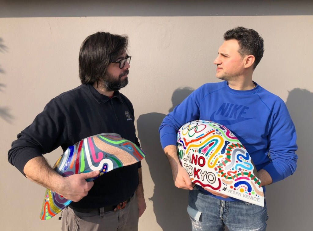 Domenica 13 giugno Fabio Cofferati partirà da Milano, precisamente dalla “Torre Vespa” in corso Sempione. Ha deciso di ripercorrere l’impresa di Roberto Patrignani che nel 1964 con la stessa Vespa e dallo stesso punto di partenza, intraprese questo super viaggio di ben 14.000 chilometri!!! L’arrivo sarà in Giappone, a Tokyo! Lo scopo è la visita a “Casa Italia” la sede dei nostri atleti olimpionici che come Fabio hanno dovuto posticipare la loro impresa olimpica di un anno a causa del Covid19. Questo posticipo ha però permesso a Fabio di contattarmi e propormi di intervenire su questo suo progetto, facendo diventare la sua Vespa una Vespa d’arte.
