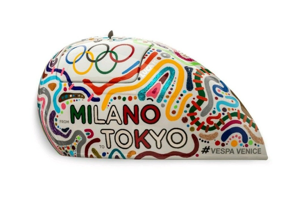 Oltre all’opera “Vespa Milano-Tokyo” sarà esposta anche una stampa d’arte di “Vespa Venice”.