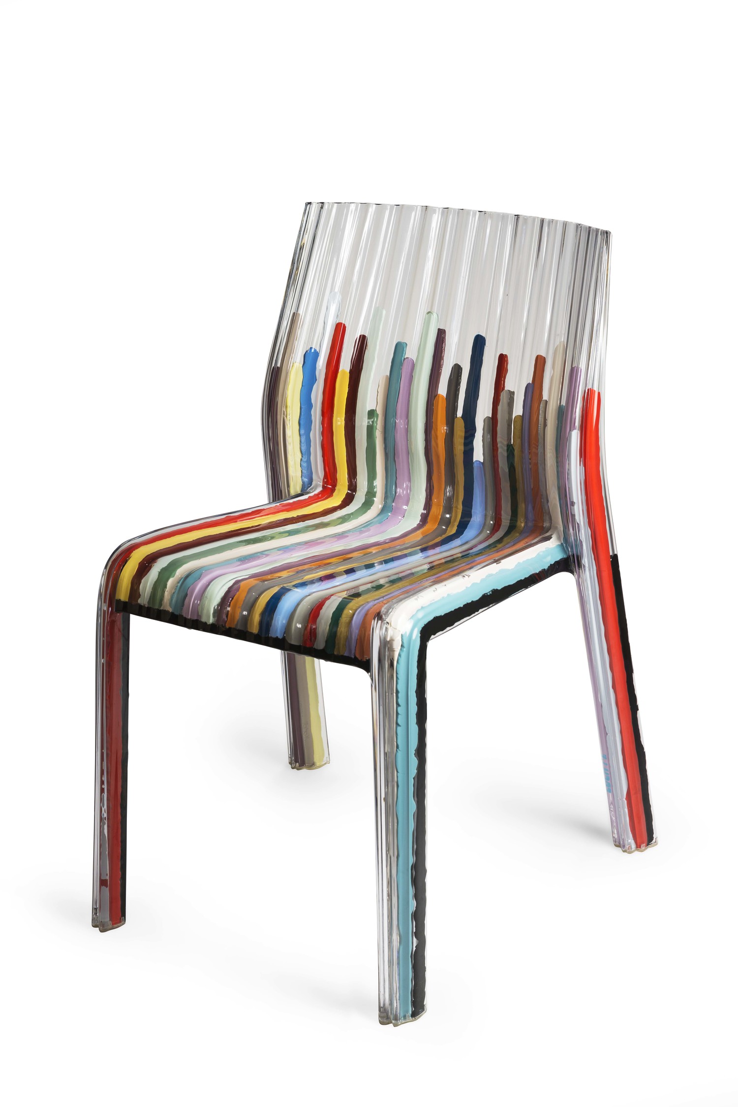 Titolo dell’Opera: KARTELL FRILLY – Colored Lines (Reinterpretazione artistica Luca Moretto) Produzione: Kartell anno 2008 – Design: Patricia Urquiola Tecnica: Silicone su policarbonato – Dimensioni: cm 78x47x54 Anno di esecuzione artistica by Luca M. : 2014
